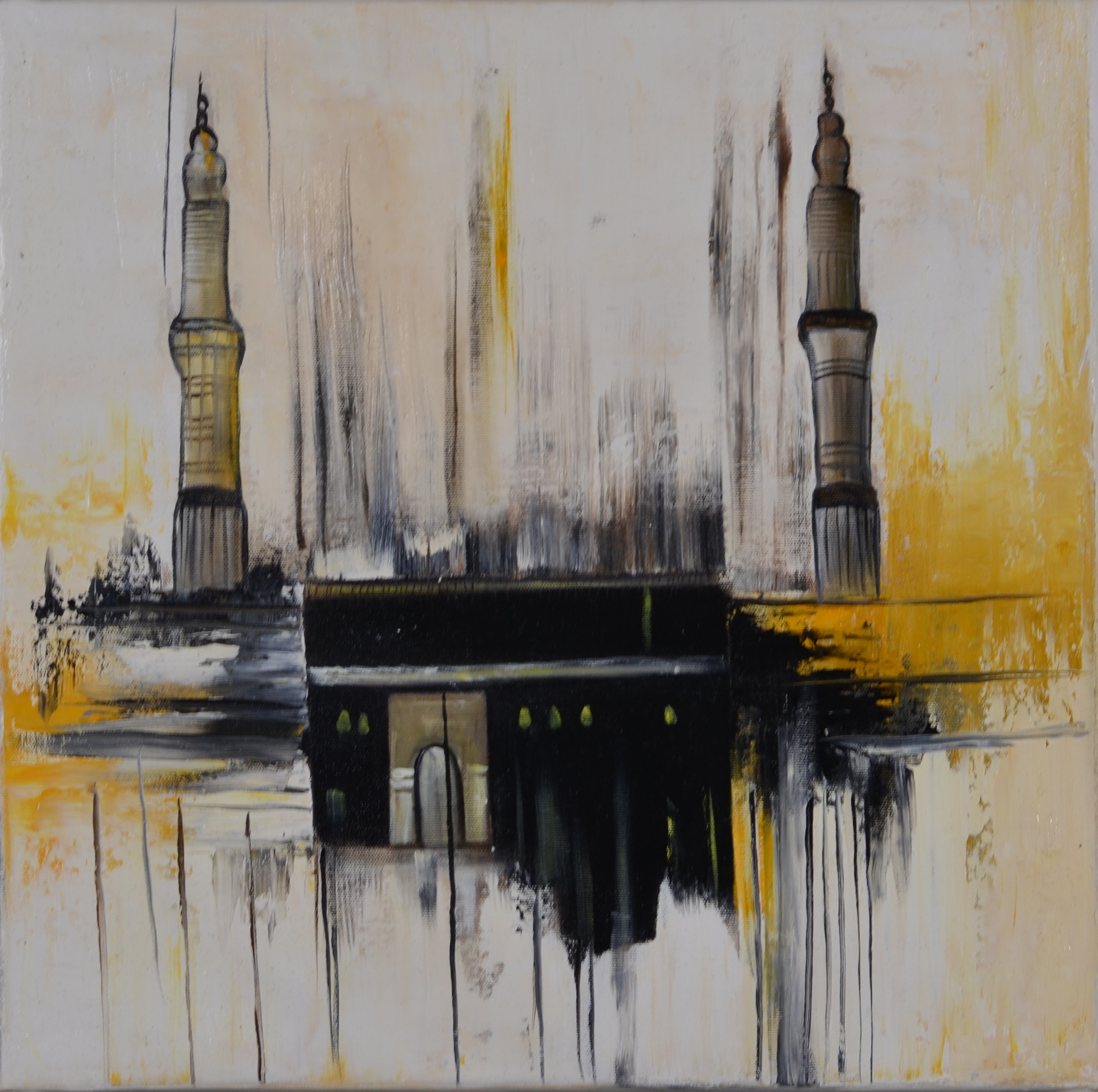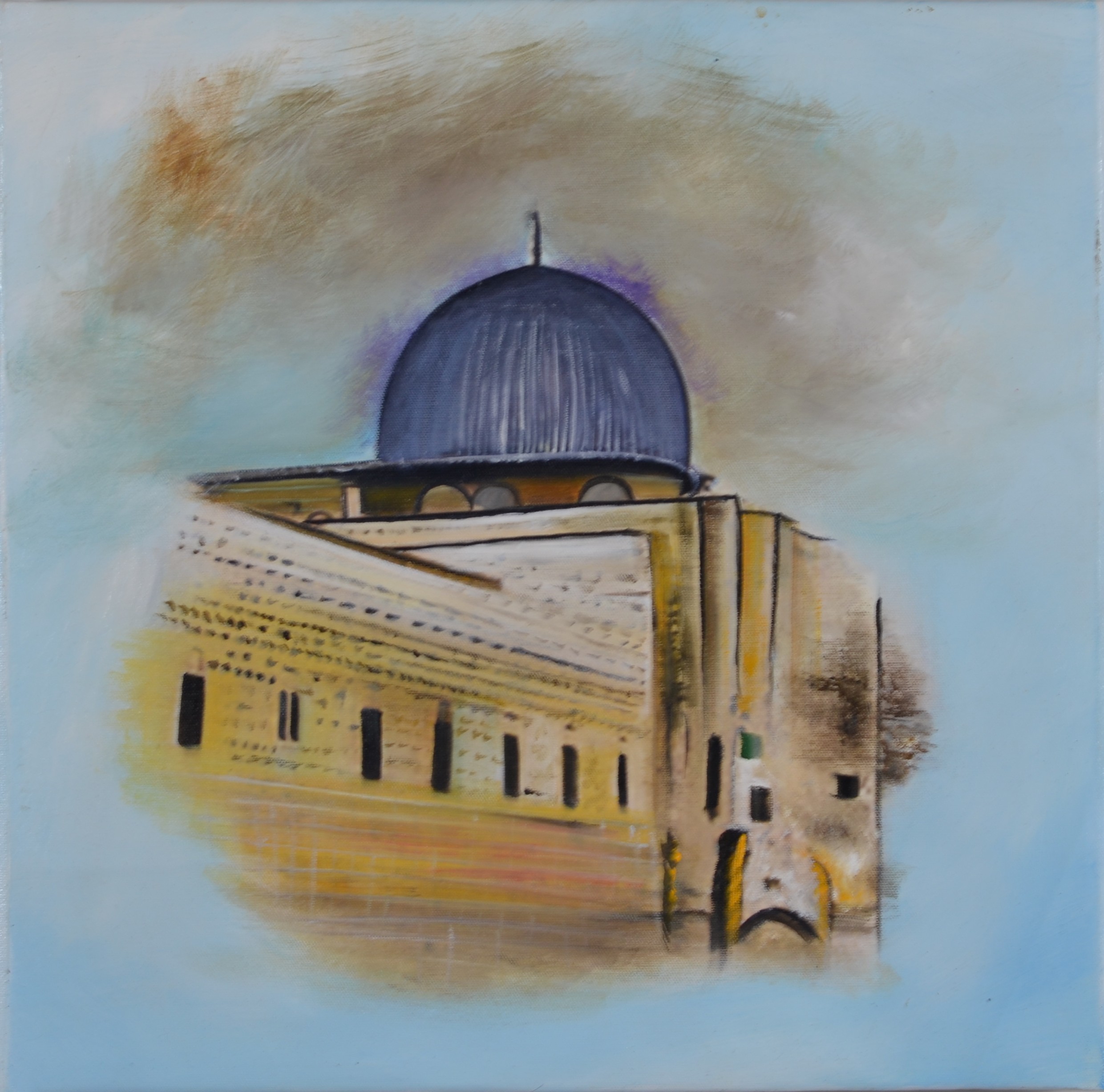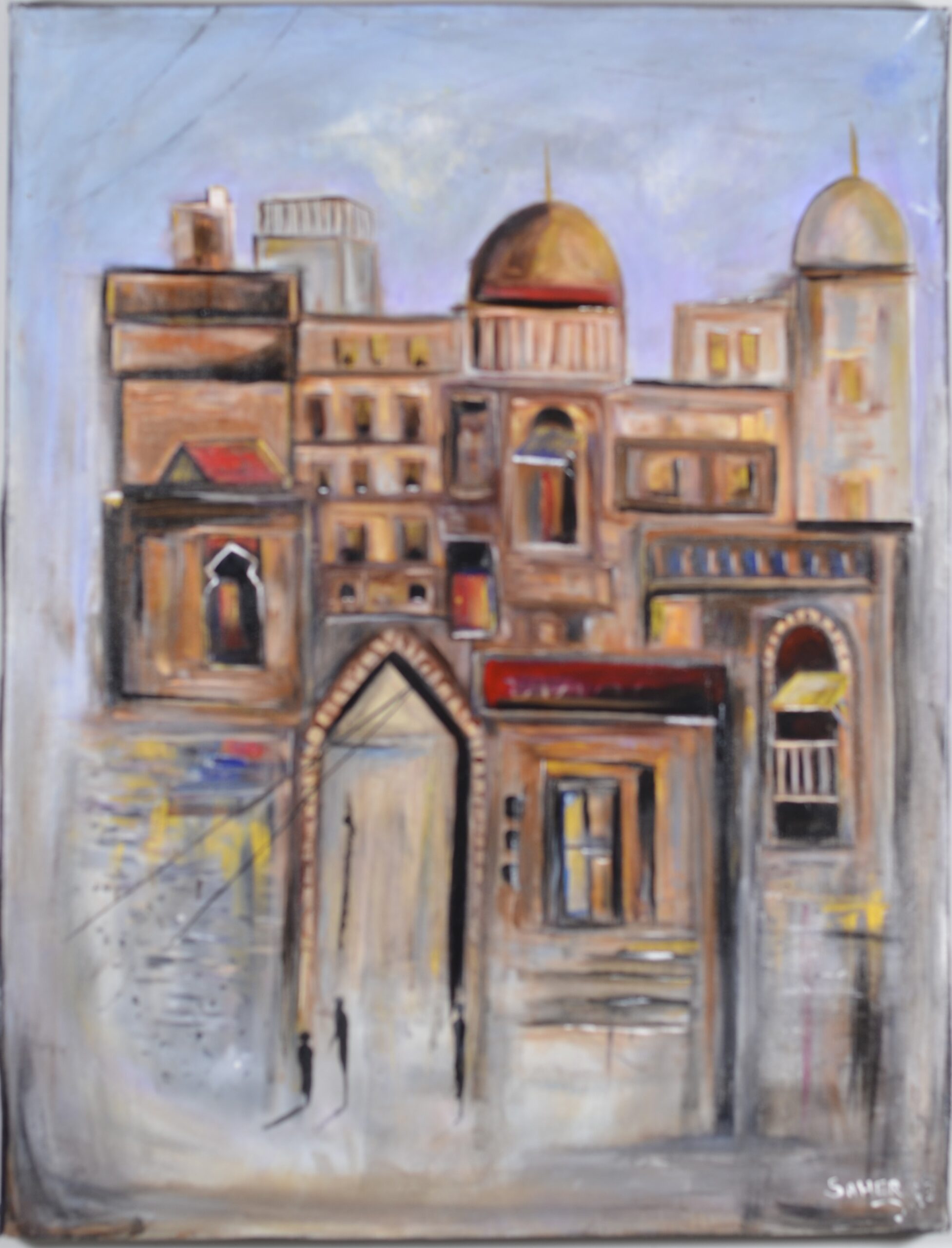 This textured mixed media painting captures the spirit of ancient sacred architecture — layered in memory, history, and silent prayers. Golden domes rise beneath a hazy sky, while weathered facades whisper stories of devotion, resilience, and forgotten footsteps. Echoes of the Sacred Walls invites the viewer into a mystic cityscape where time stands still and the divine feels near.