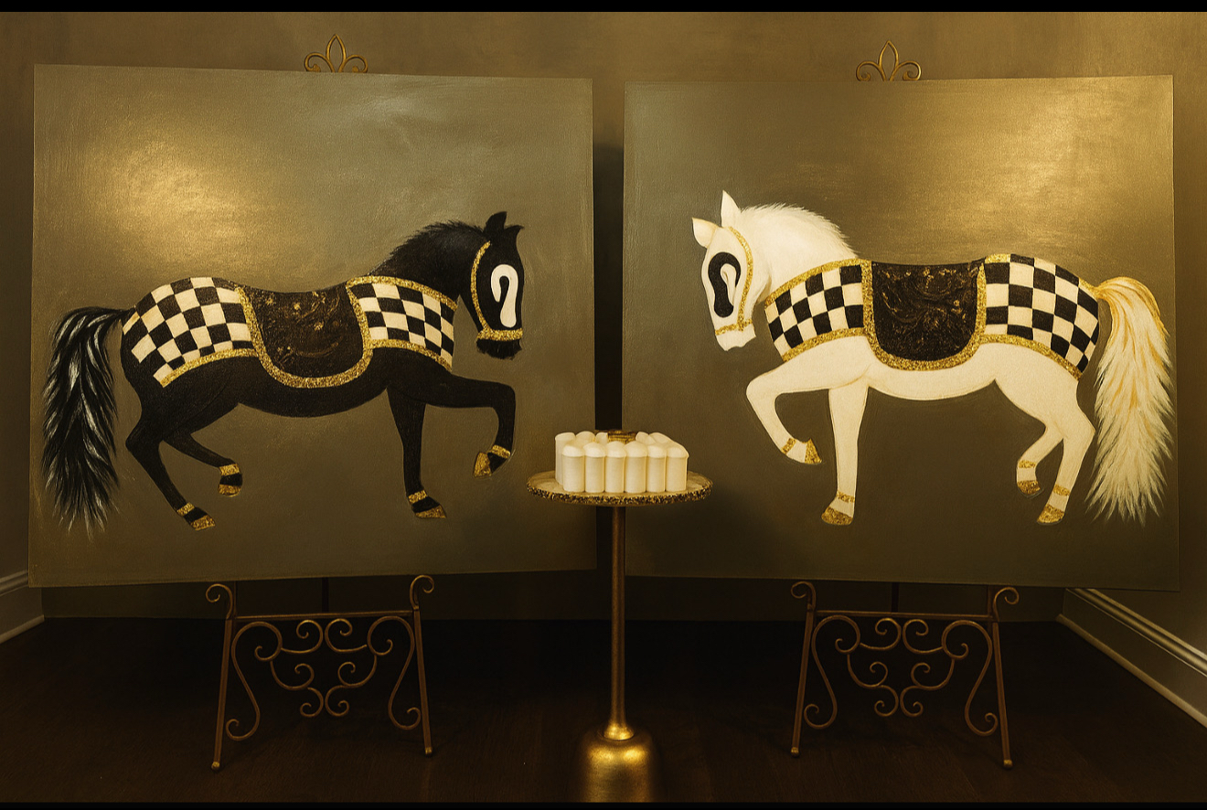 In the grand game of life, as in chess, the most unpredictable move belongs to the horse. Graceful yet strategic, it holds power to protect, to surprise, and to change the course of the kingdom The black and white steeds stand in perfect opposition - rivals in form-allies in destiny-ech a silent force behind every victory.